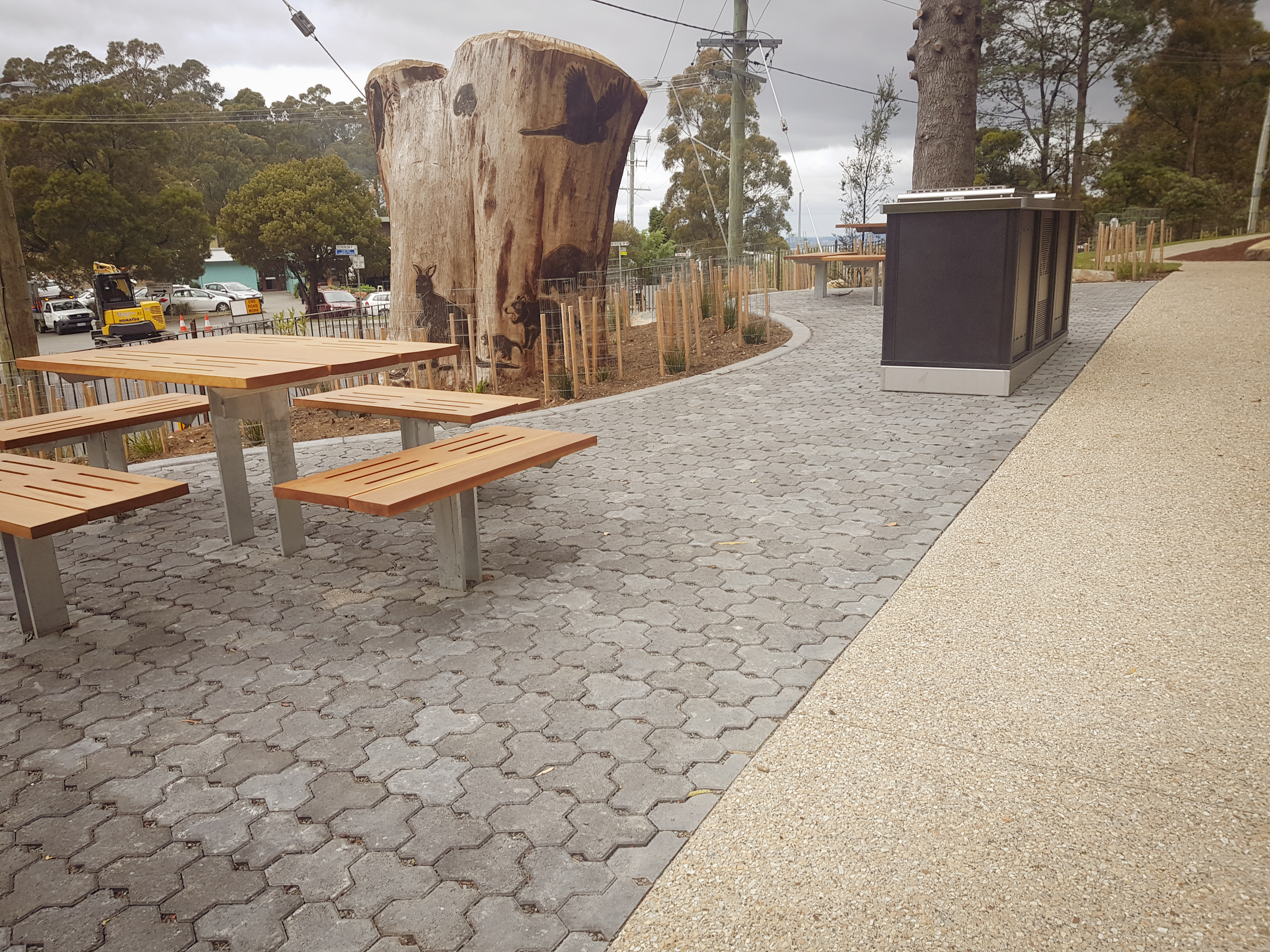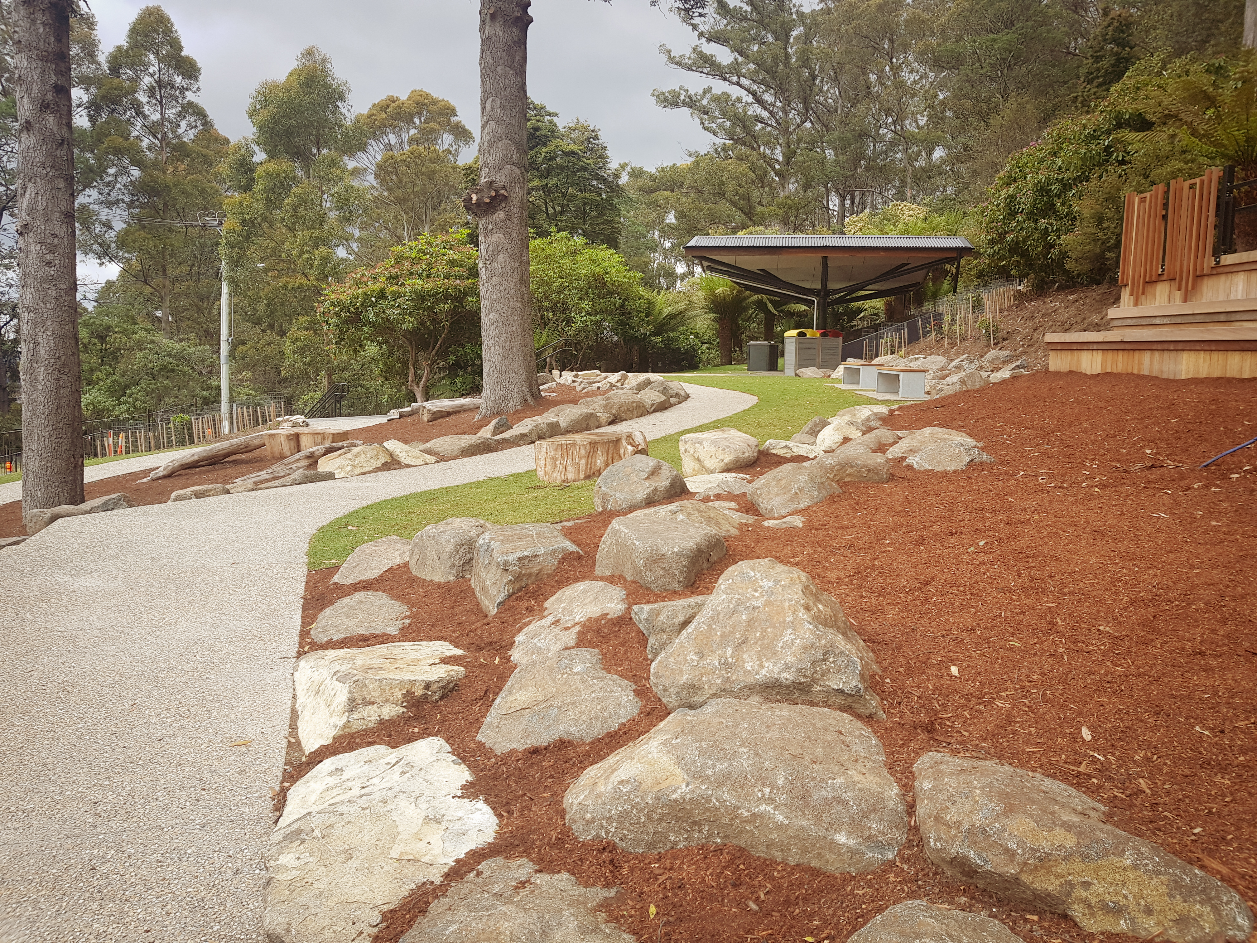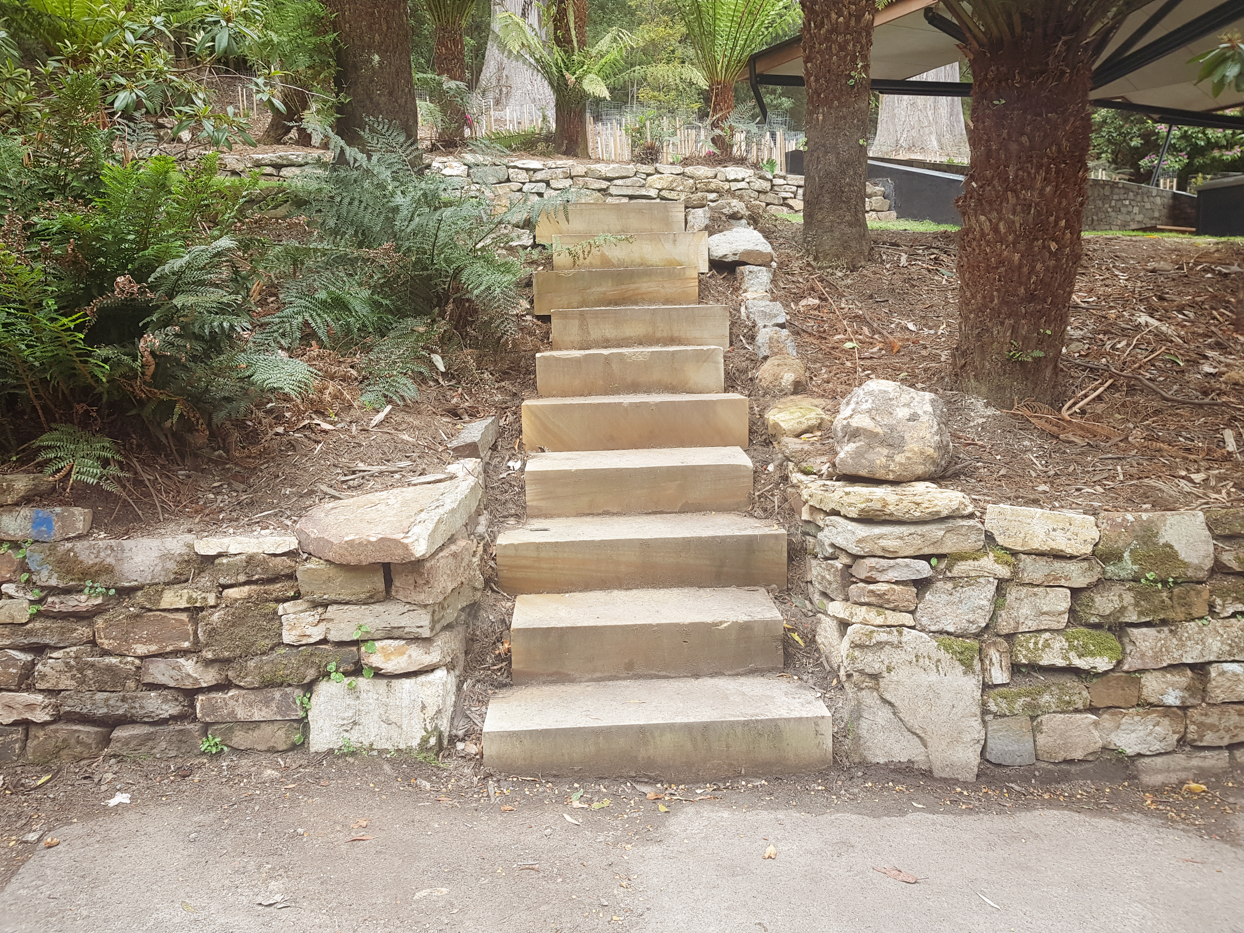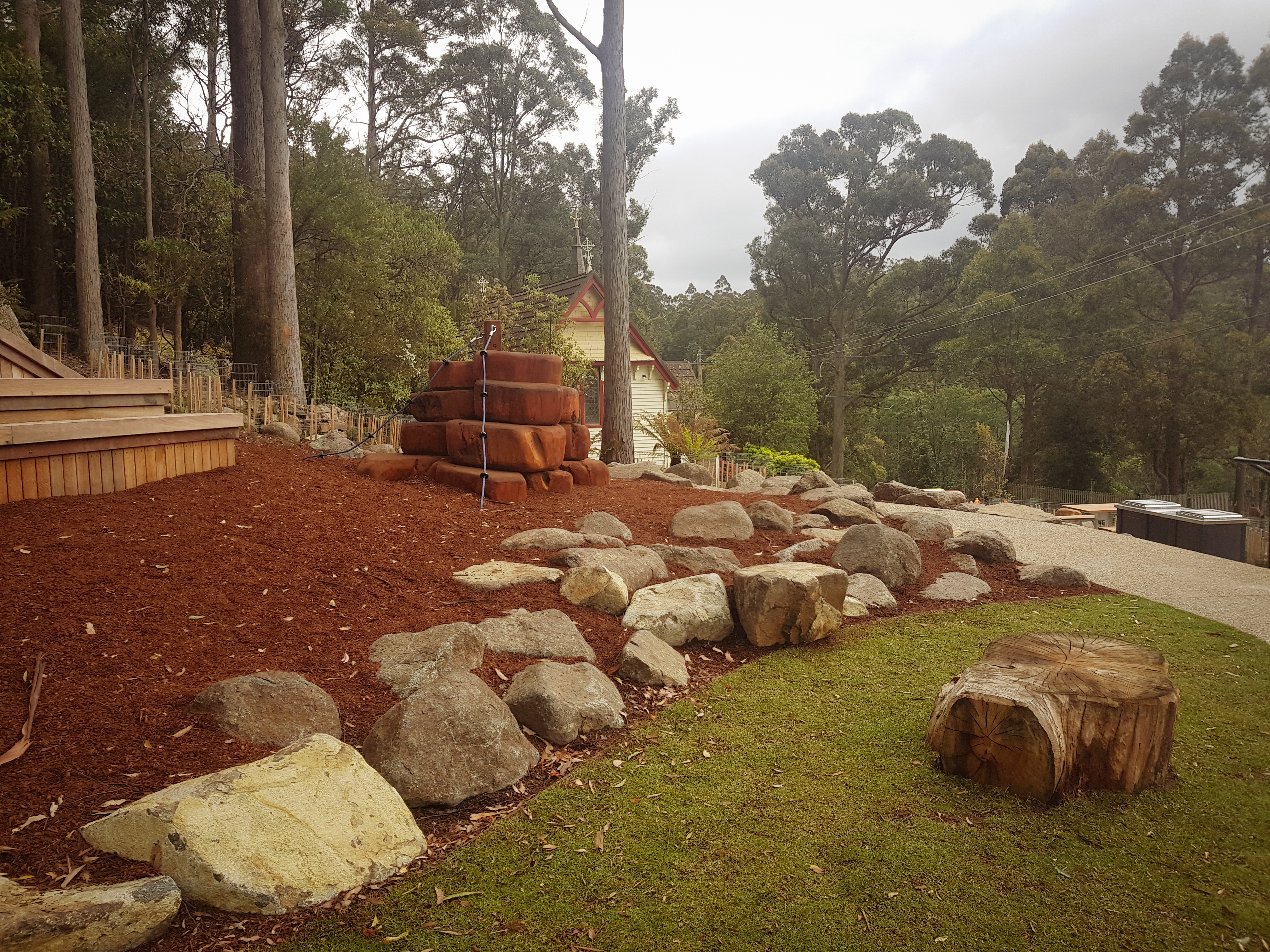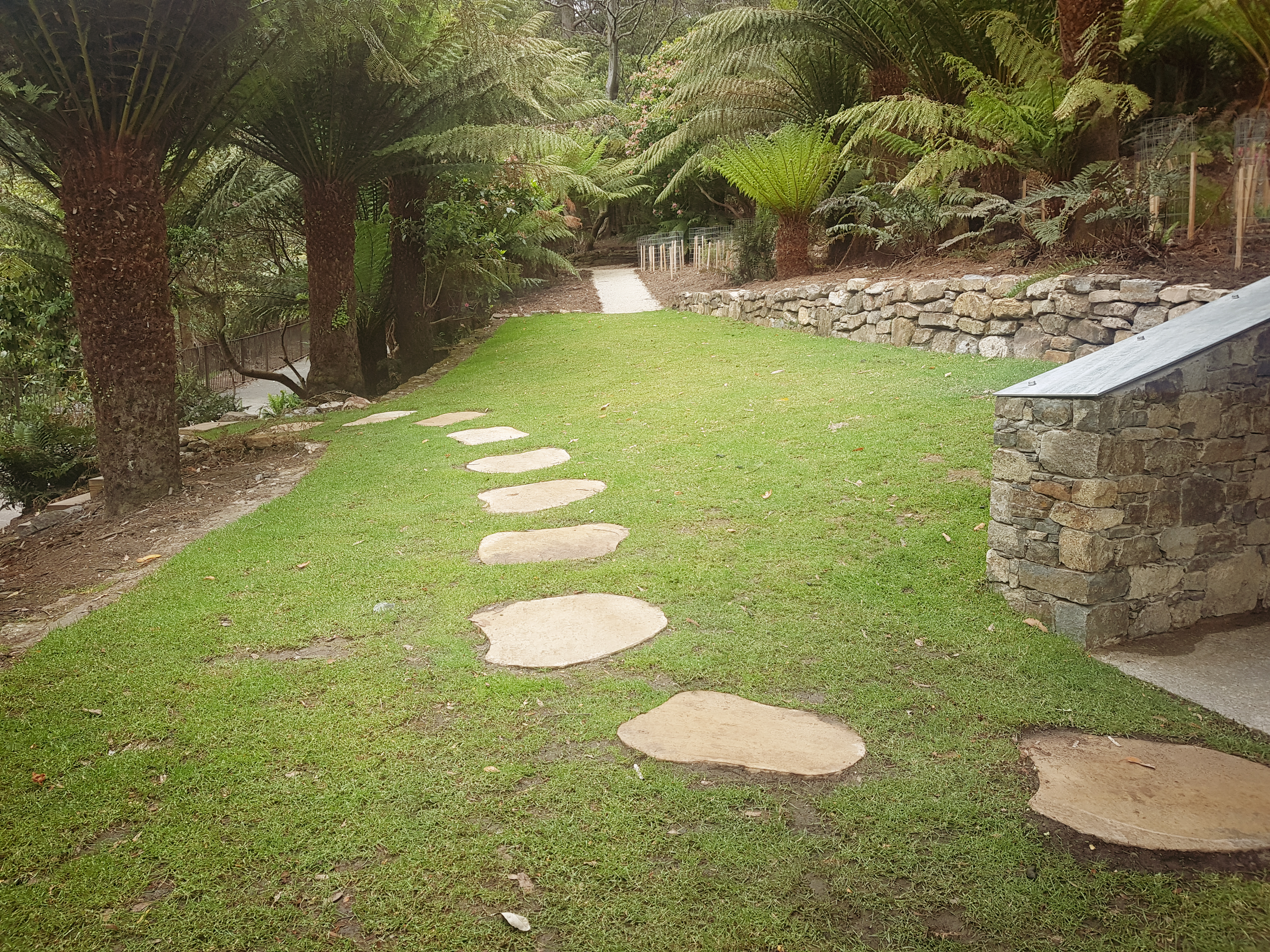 Dirtglue Industrial limestone paths, Dolerite boulders, instant lawn, Eco-Trihex pavers