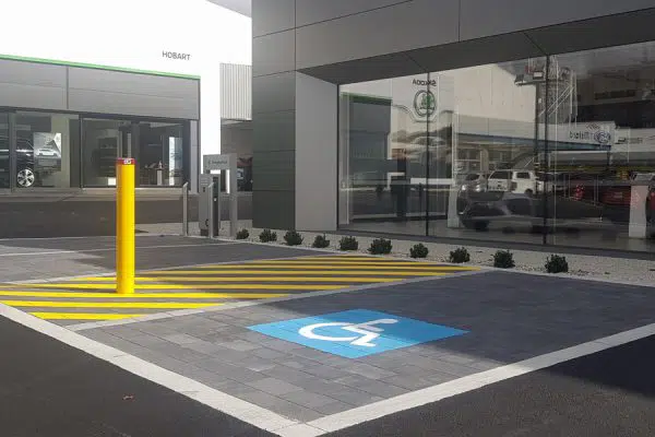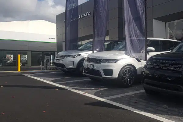 SLS Landscape Group was contracted by Tascon Constructions to complete paving and garden works at the new Jaguar Land Rover showroom in Hobart. The project involved trafficable paving, flush concrete kerb, linemarking, garden beds, exposed aggregate concrete and gravel stabilised with Pebblecrete. Overall a very neat finish to a prestigious new showroom in Hobart’s city centre.