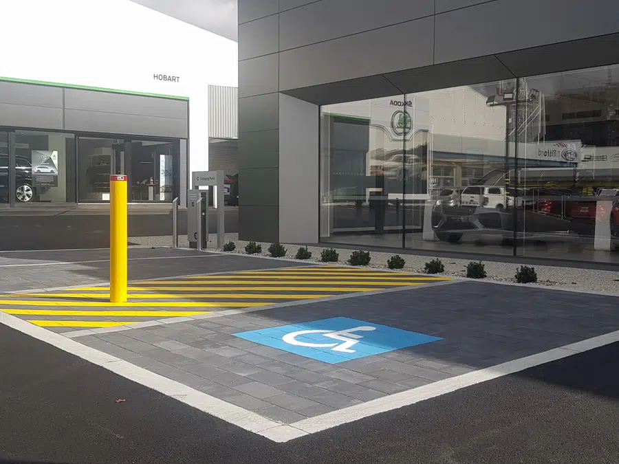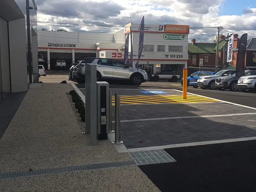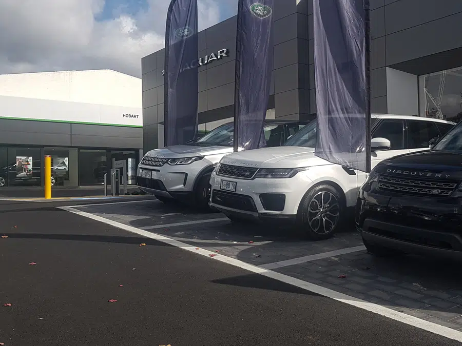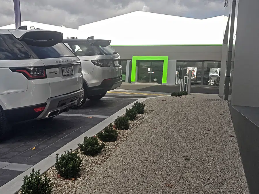 SLS Landscape Group was contracted by Tascon Constructions to complete paving and garden works at the new Jaguar Land Rover showroom in Hobart. The project involved trafficable paving, flush concrete kerb, linemarking, garden beds, exposed aggregate concrete and gravel stabilised with Pebblecrete. Overall a very neat finish to a prestigious new showroom in Hobart’s city centre.