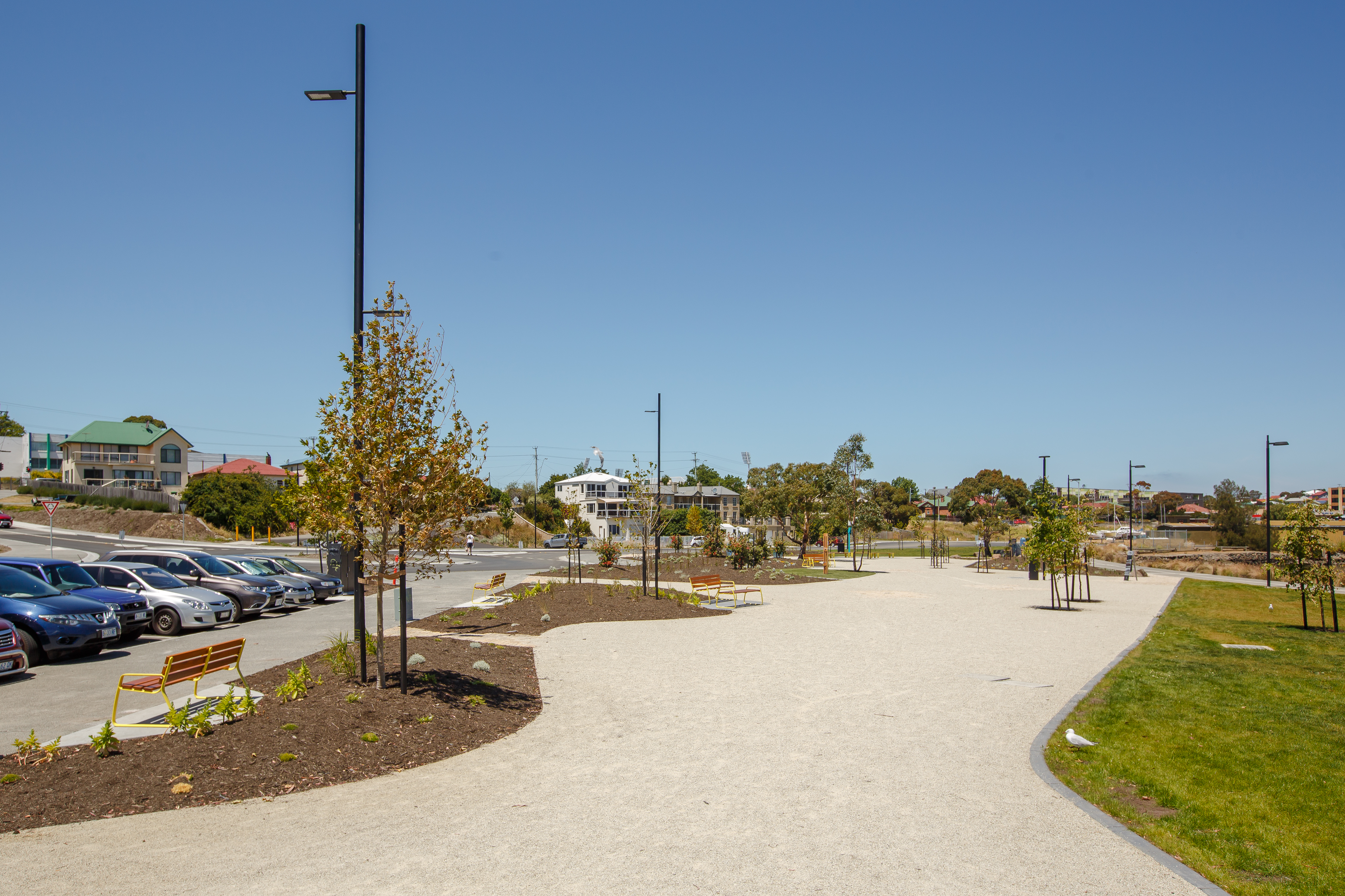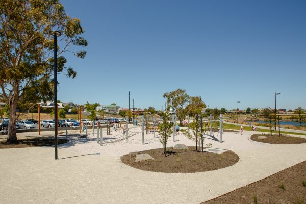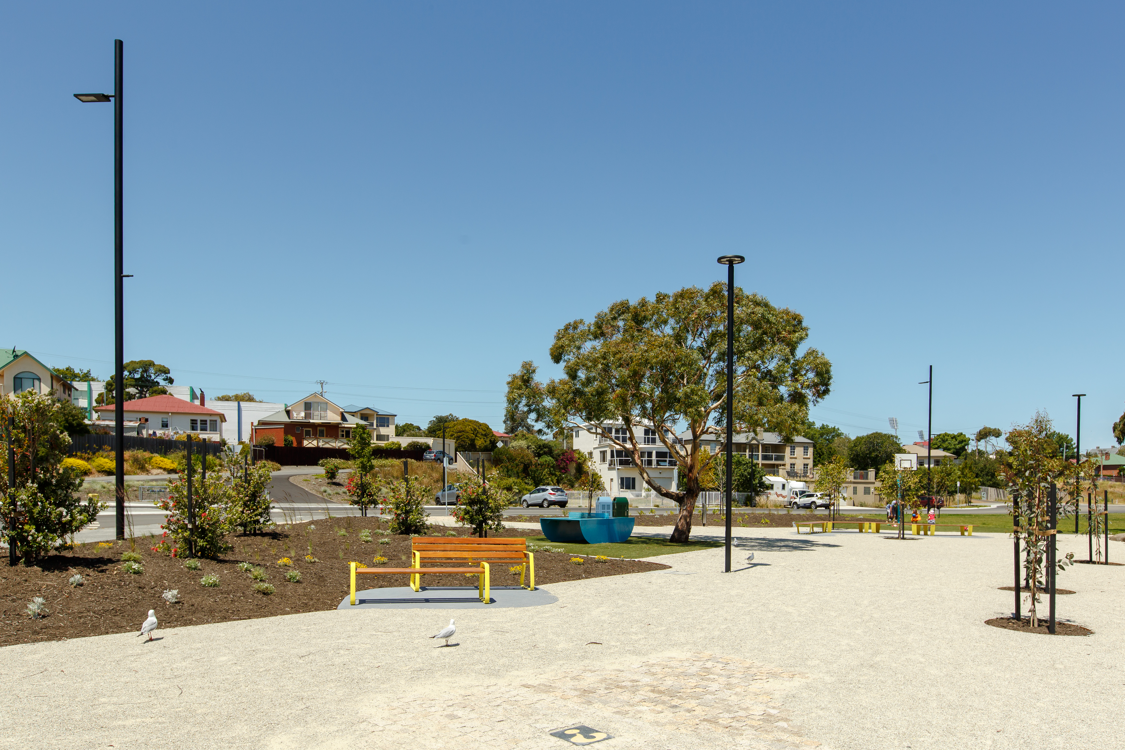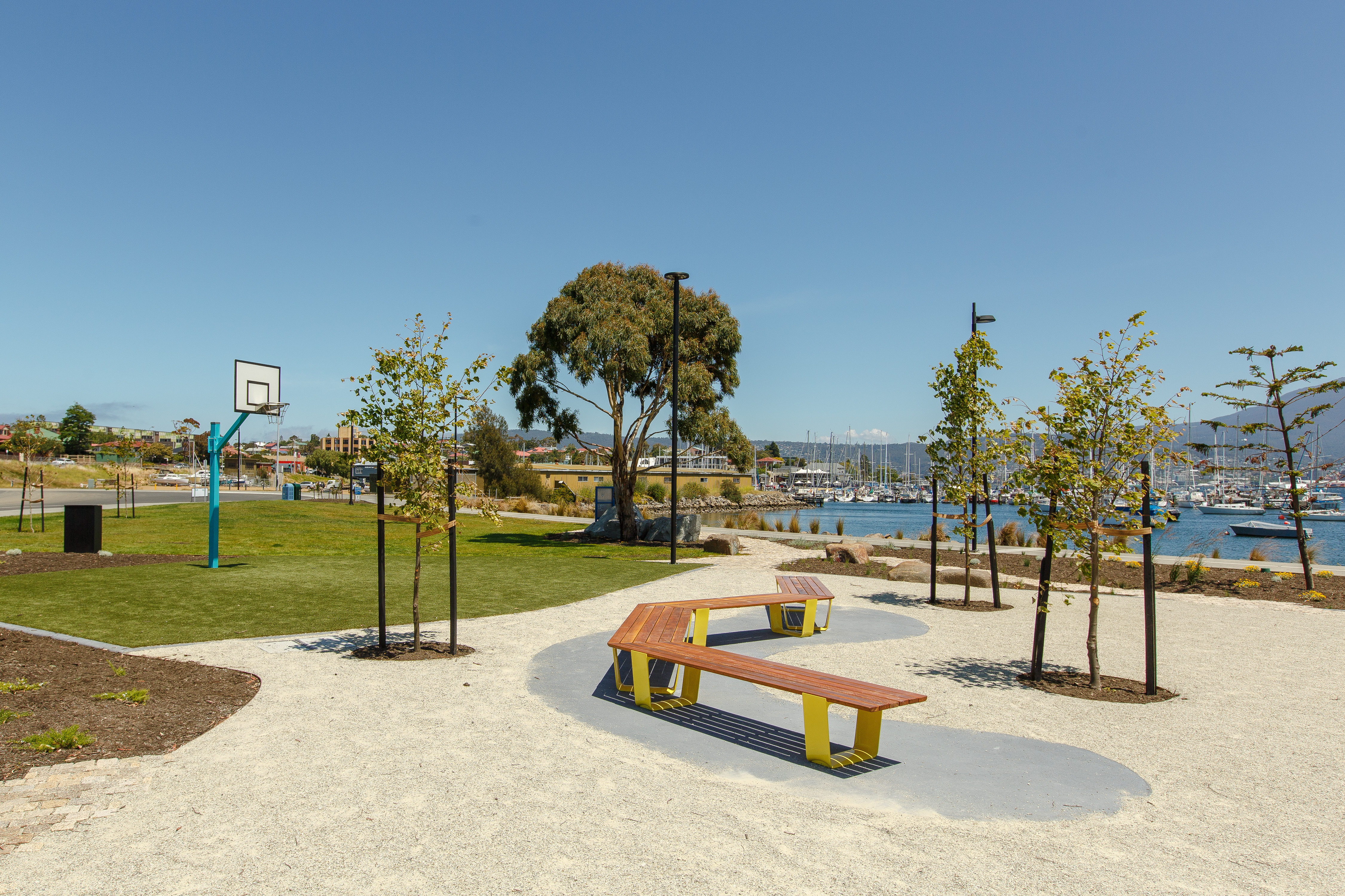 Kangaroo Bay Parklands is an iconic park located in Clarence on Hobart’s eastern shore. SLS worked with landscape designer Playstreet and the Clarence City Council to successfully deliver the flagship park facility in the area complete with barbecue and picnic areas, sailing boats and water play, elderly exercise facilities, table tennis table, basketball area, walking paths and landscaped lawns and gardens.
