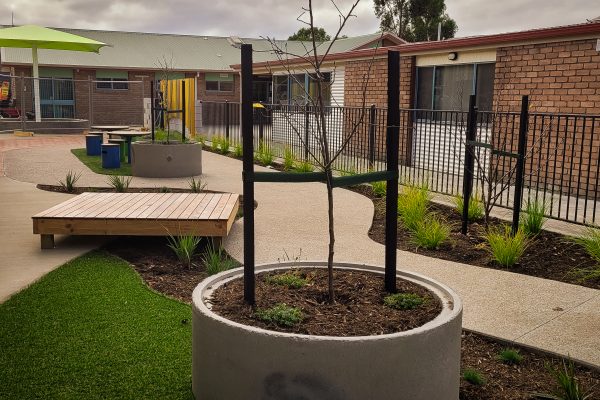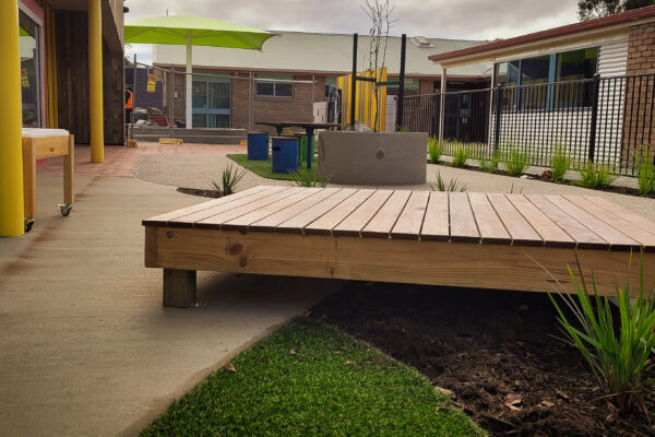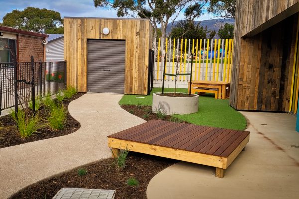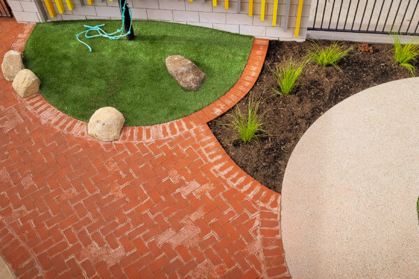 SLS was contracted by VOS Construction for the construction of this area which included playground sections, furniture, covered outdoor areas, paths, steps, walls, lawns and gardens. The final outcome – outstanding!