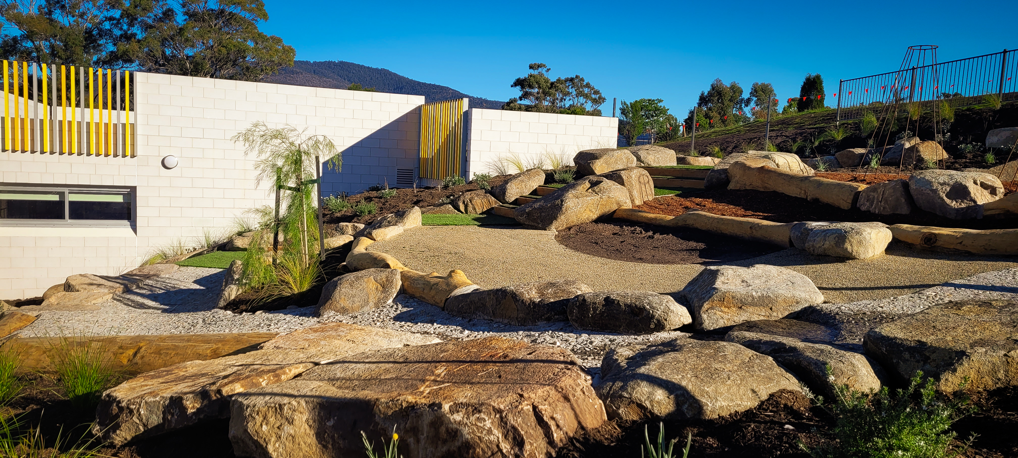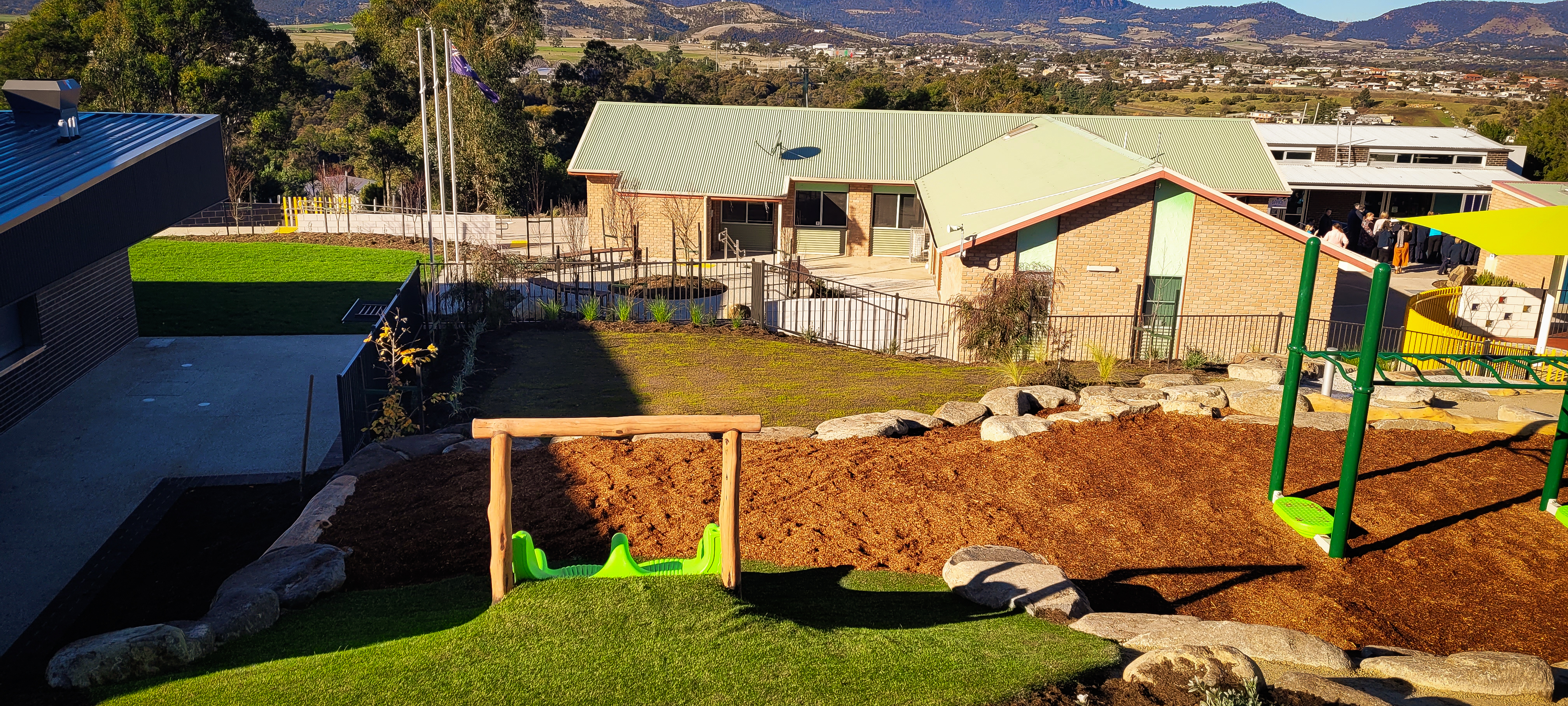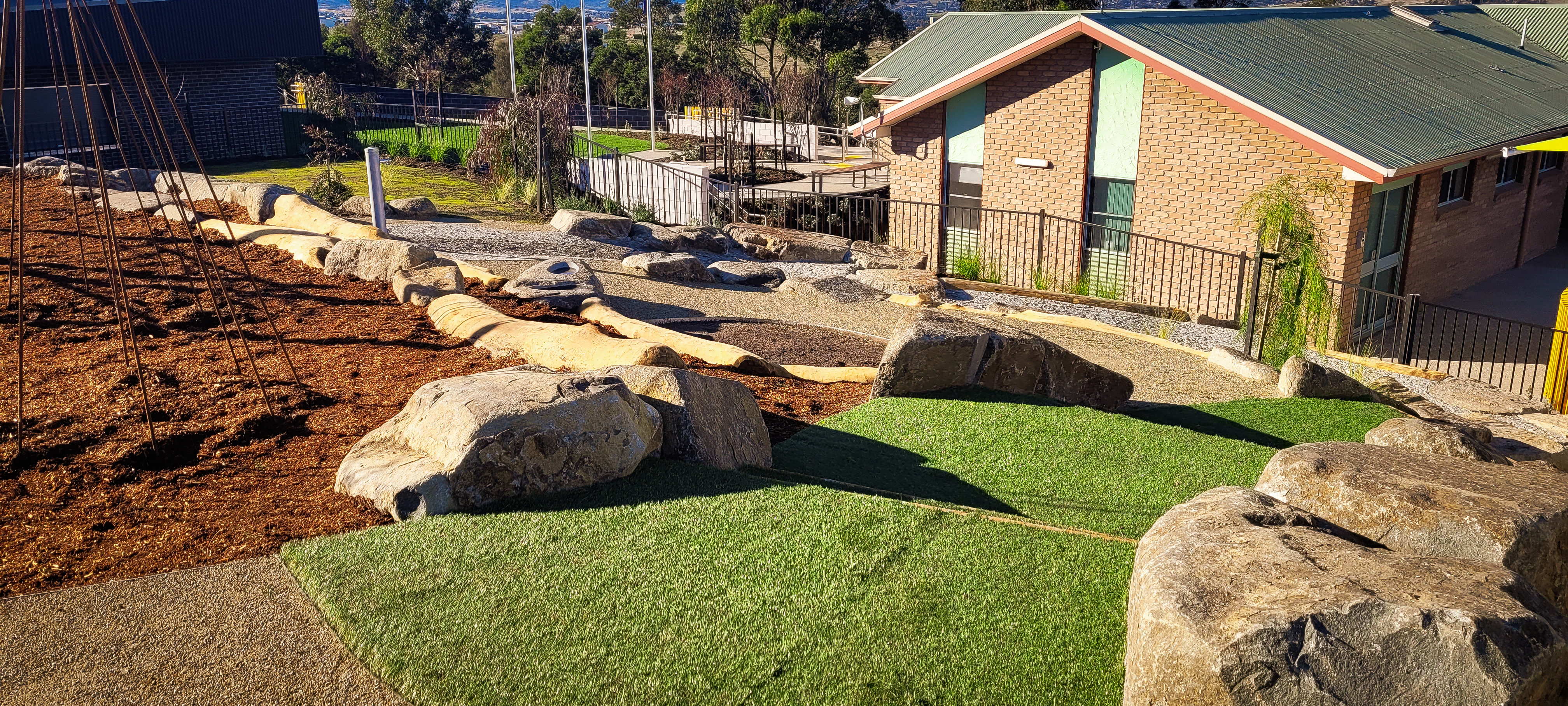 SLS was contracted by VOS Construction for the construction of this area which included playground sections, furniture, covered outdoor areas, paths, steps, walls, lawns and gardens. The final outcome – outstanding!