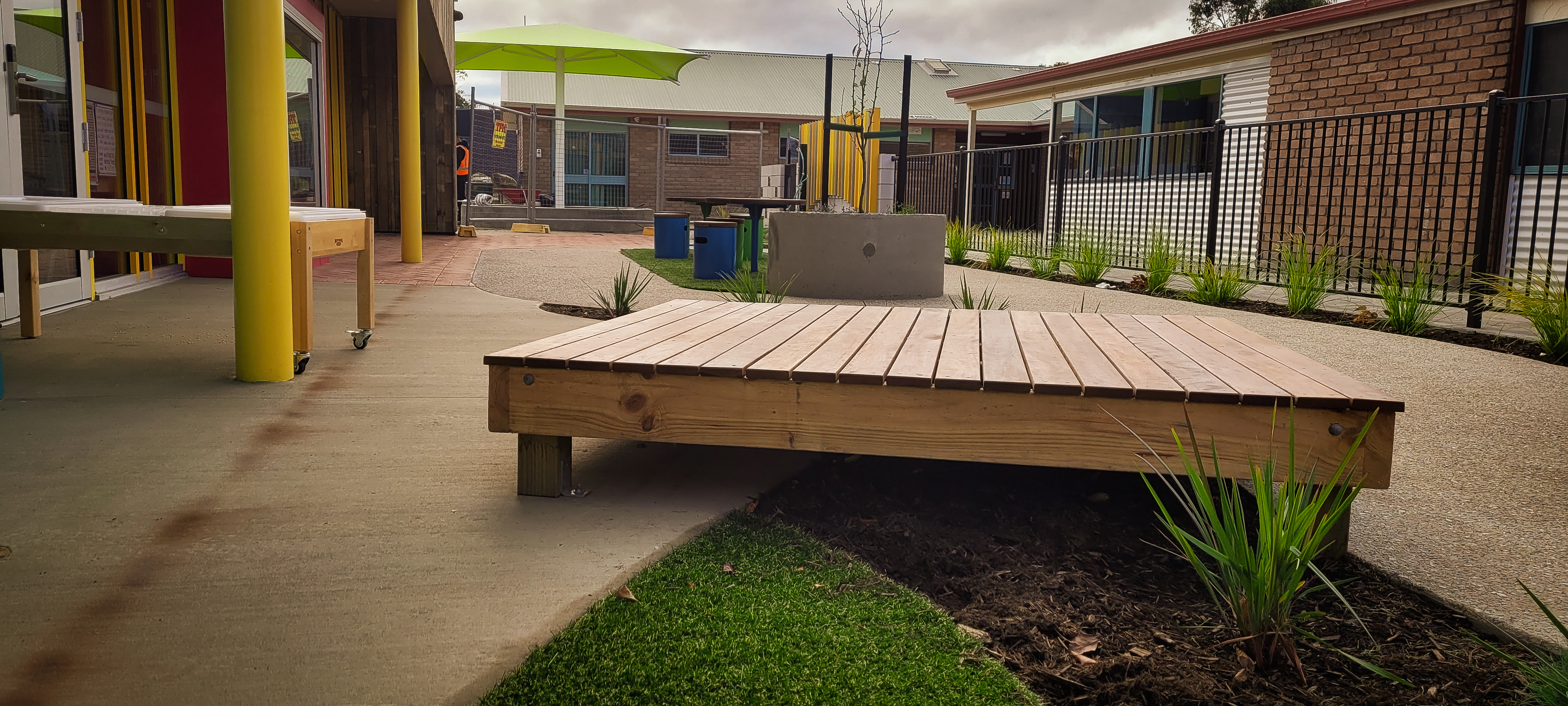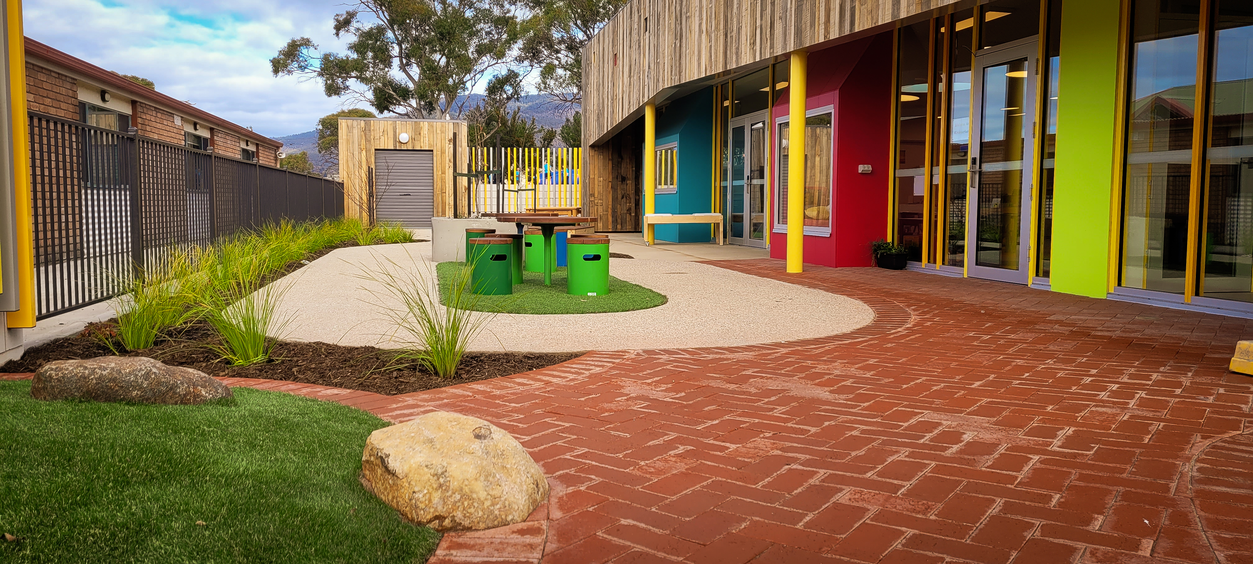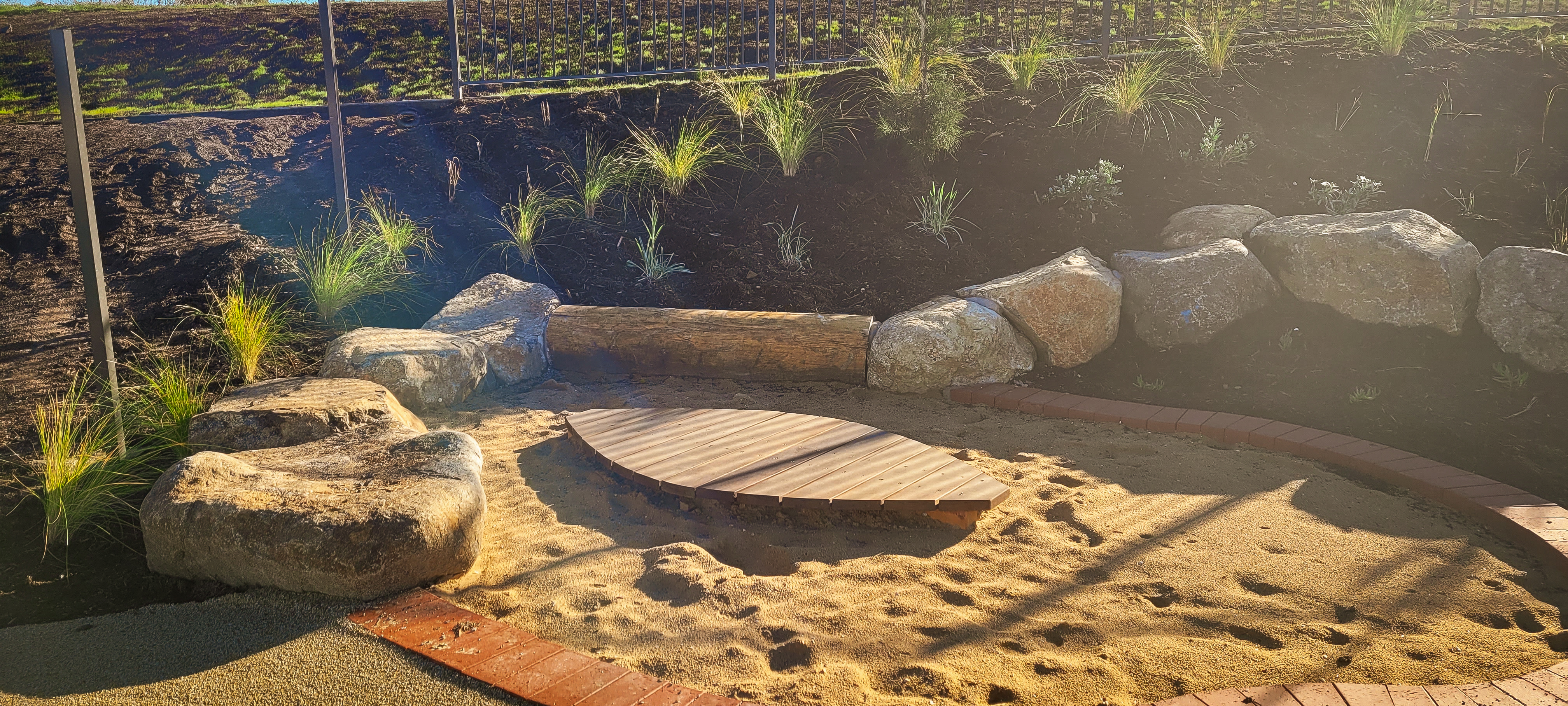 SLS was contracted by VOS Construction for the construction of this area which included playground sections, furniture, covered outdoor areas, paths, steps, walls, lawns and gardens. The final outcome – outstanding!