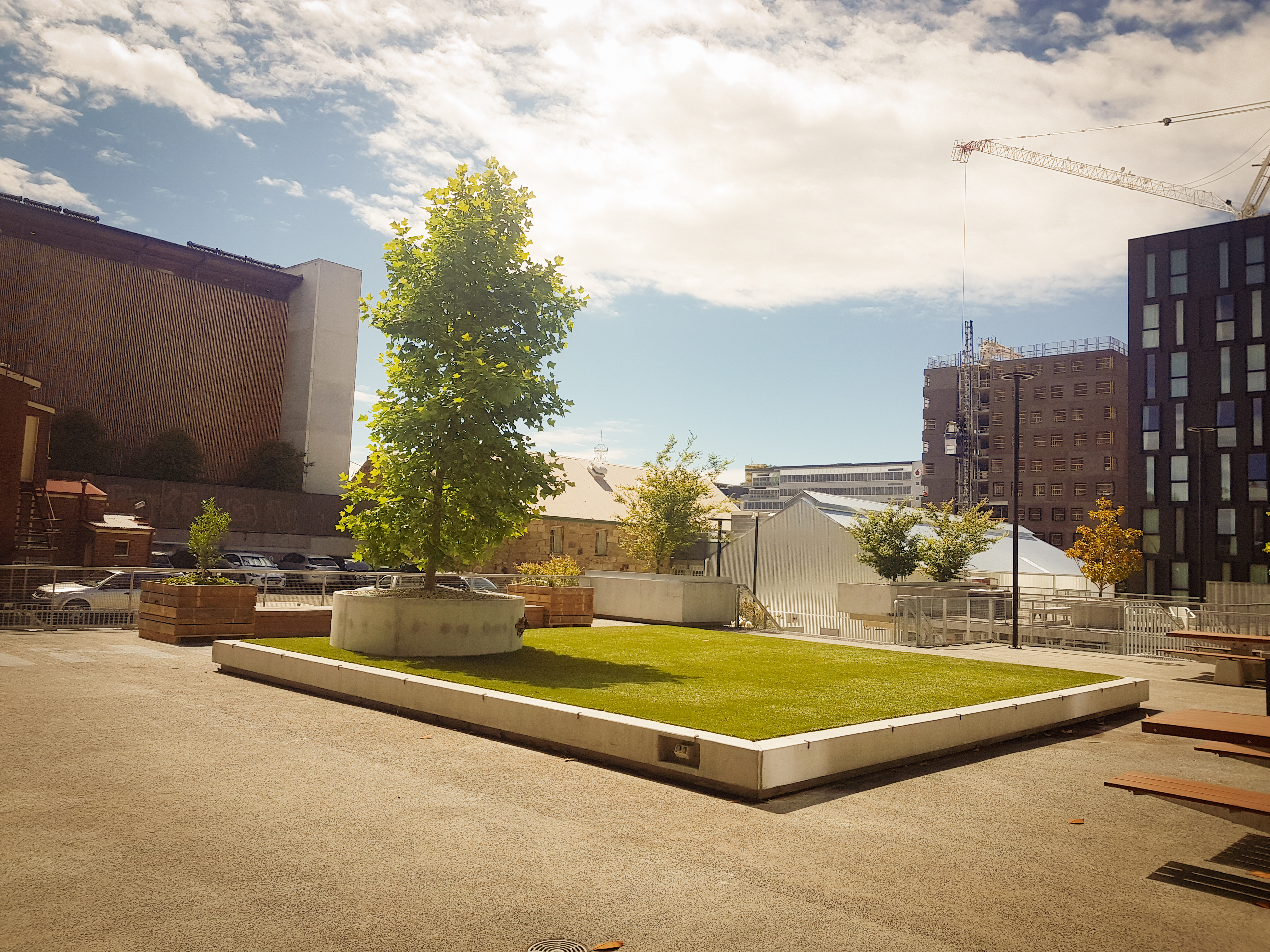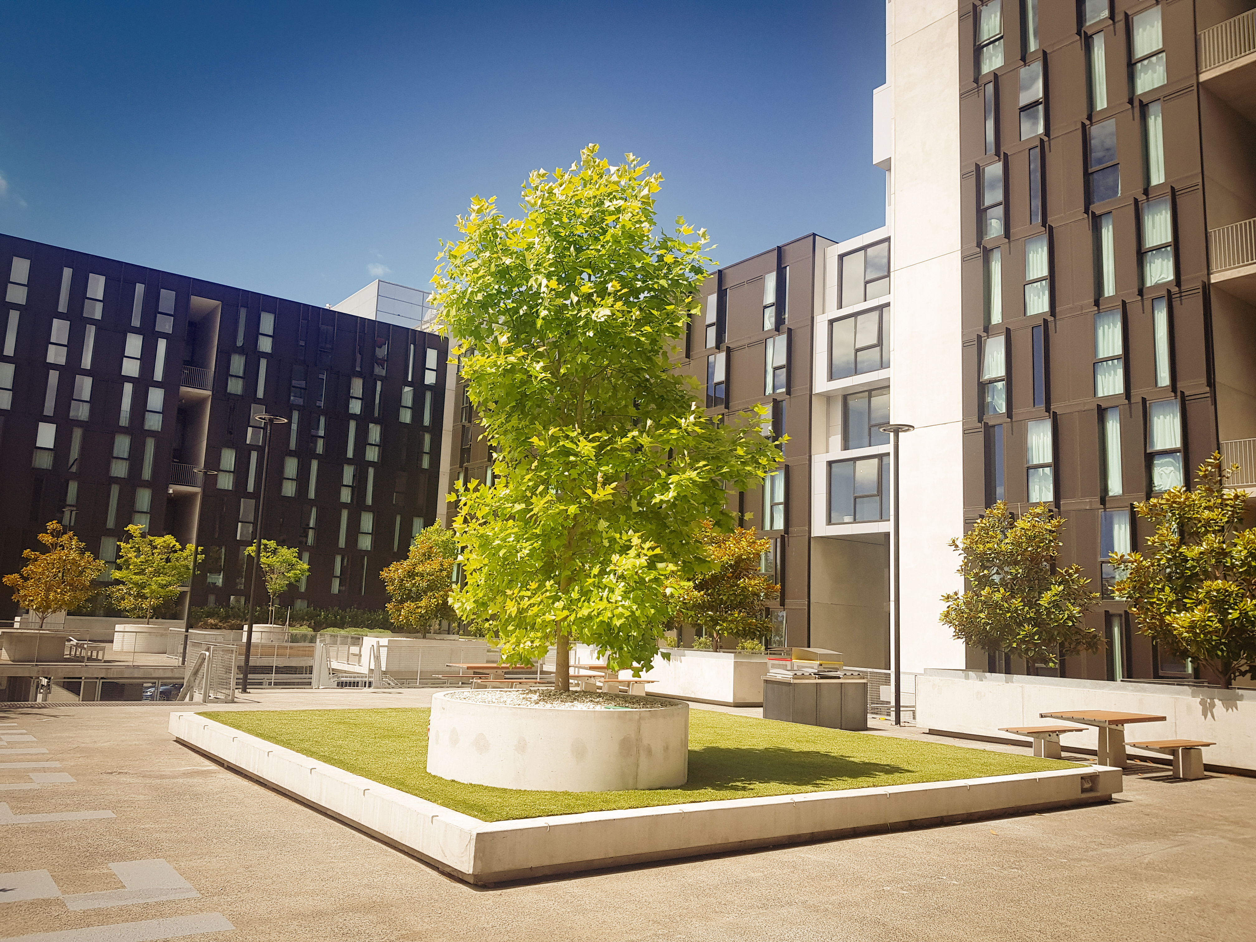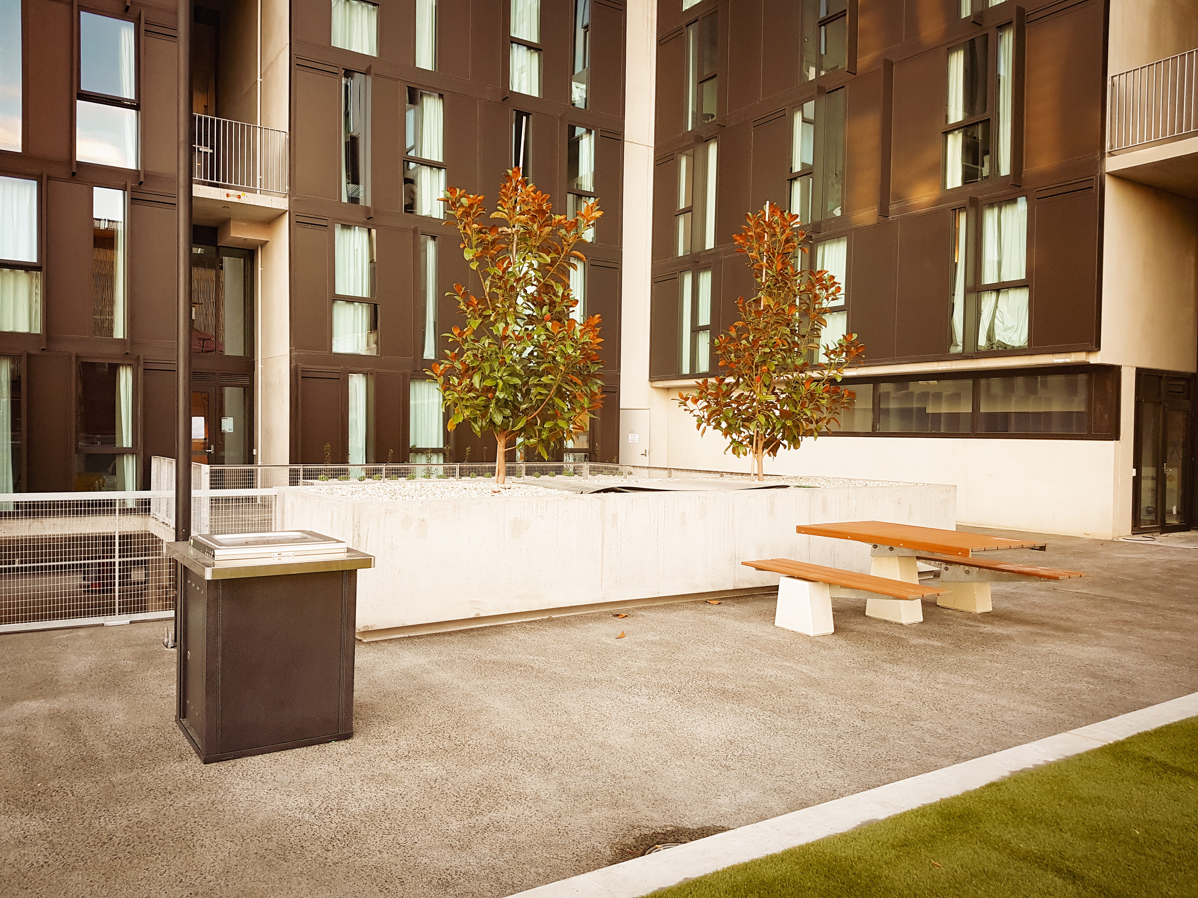 Synthetic grass, SFA bike racks, Botton + Gardiner furniture, Christie Parksafe BBQ’s